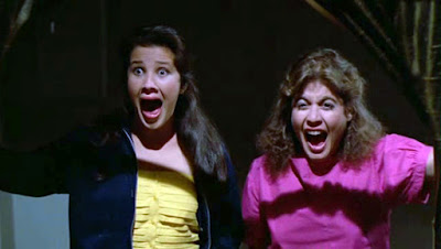 To get into all the ways that The Initiation ends up being crazy would require spoilers, which I won't provide here. Like the similarly nutty Blood Rage (ok, Blood Rage is nuttier...way nuttier), the movie has to reinvent certain slasher tropes to stand out. It is more successful in some ways than others. The whole "teens locked in a mall overnight" is reminiscent of movies like Night of the Comet and Chopping Mall (even though one of those came after) and the kills themselves aren't necessarily more inventive or interesting than your everyday slash-and-stab, but the weird psychological detours the screenplay takes (by Charles Pratt Jr., who has spent most of his career writing and producing both daytime and primetime soap operas) are what give the movie color. The presence of both Vera Miles and Clu Gulager help give the project an air of authenticity -- they are genre royalty, after all -- but both actors contribute what are essentially extended cameos. The movie belongs to the young cast. They, too, are mostly generic, save maybe for future soap star Hunter Tylo, who...makes an impression...and, of course, my girl D. Zunigs, who doesn't quite pop off the screen the way she would a year later in The Sure Thing but who still manages to stand apart from the rest of the actors by projecting a kind of quiet intelligence. She feels like some sort of "other" compared to the horny co-eds surrounding her, which works out perfectly for the story being told.